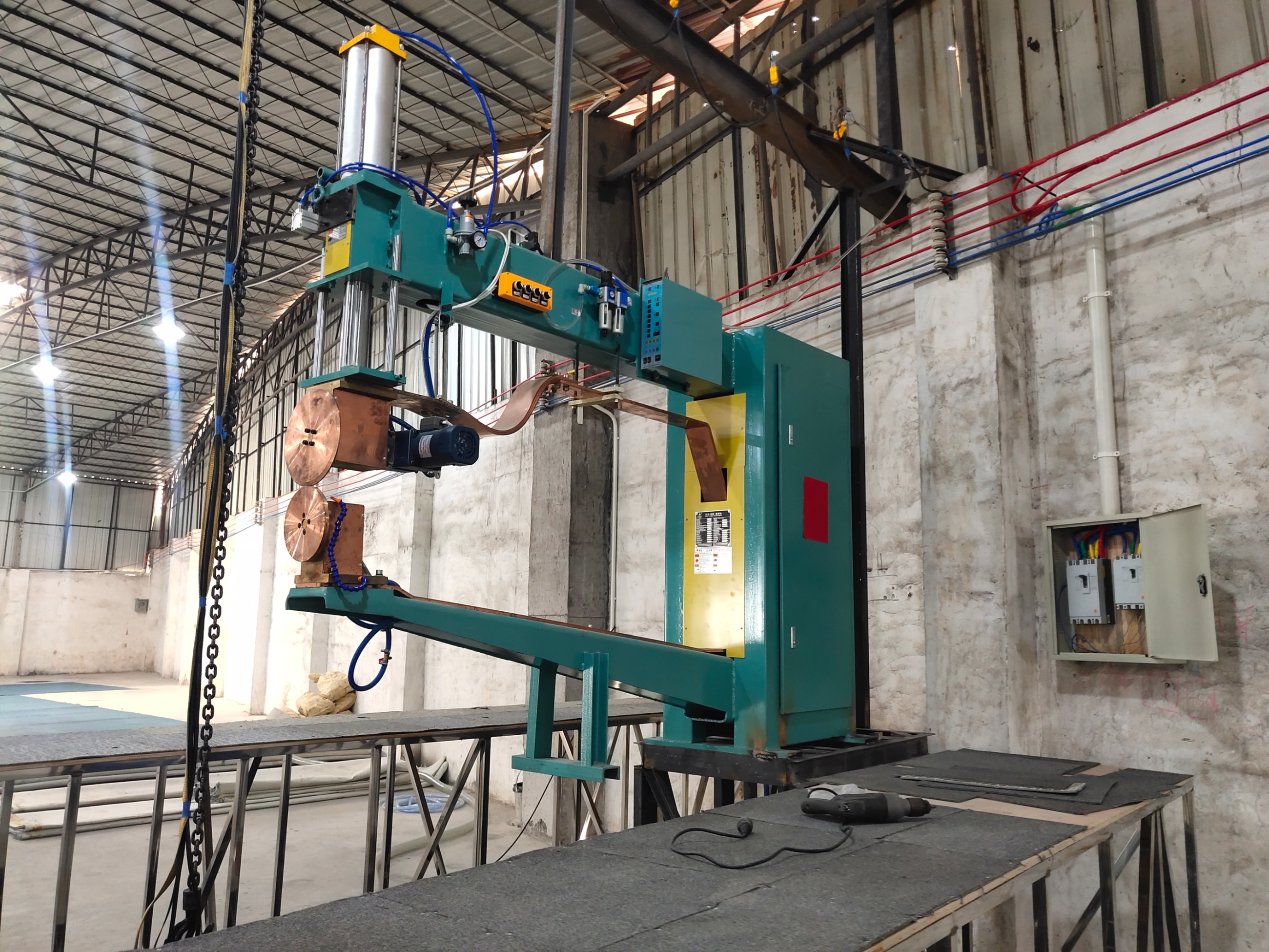 2、分體式水塔點焊機簡化工人操作,直接在下料位分體點焊,又節(jié)省空間,提高效率,工人也不用手拿鋼板更加安全。